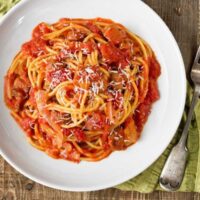 Meeresfrüchten, Knoblauch, Tomatensauce