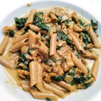 Rahmsauce, Putenfleisch, Spinat