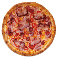 rosa Sauce, Schinken, Speck, Mais, Pfefferon