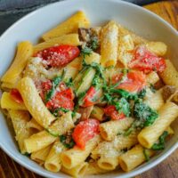 Tomaten, Tomatensauce, Olivenöl, Rucola, Parmesan