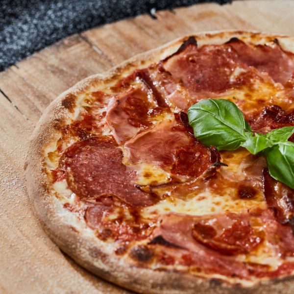 Tomaten, Kase, Pfefferoni, Schinken, Speck, Mais