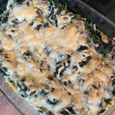 Grune Teig-blatter - Fleischsauce gefullt, Kase uberbacken
