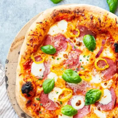 Tomaten, Kase, Schinken, scharfe Pfefferoni, Salami, Speck, Zwiebel