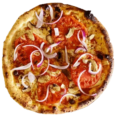 Tomaten, Kase, Schinken, scharfe Pfefferoni, Salami, Speck, Zwiebel